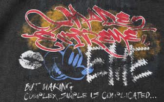 Bold graffiti-style art with “Made Extreme” in red over gold spray paint. Edgy graphics and distressed text bring raw street energy, finished with the quote: “But making complex simple is complicated...”